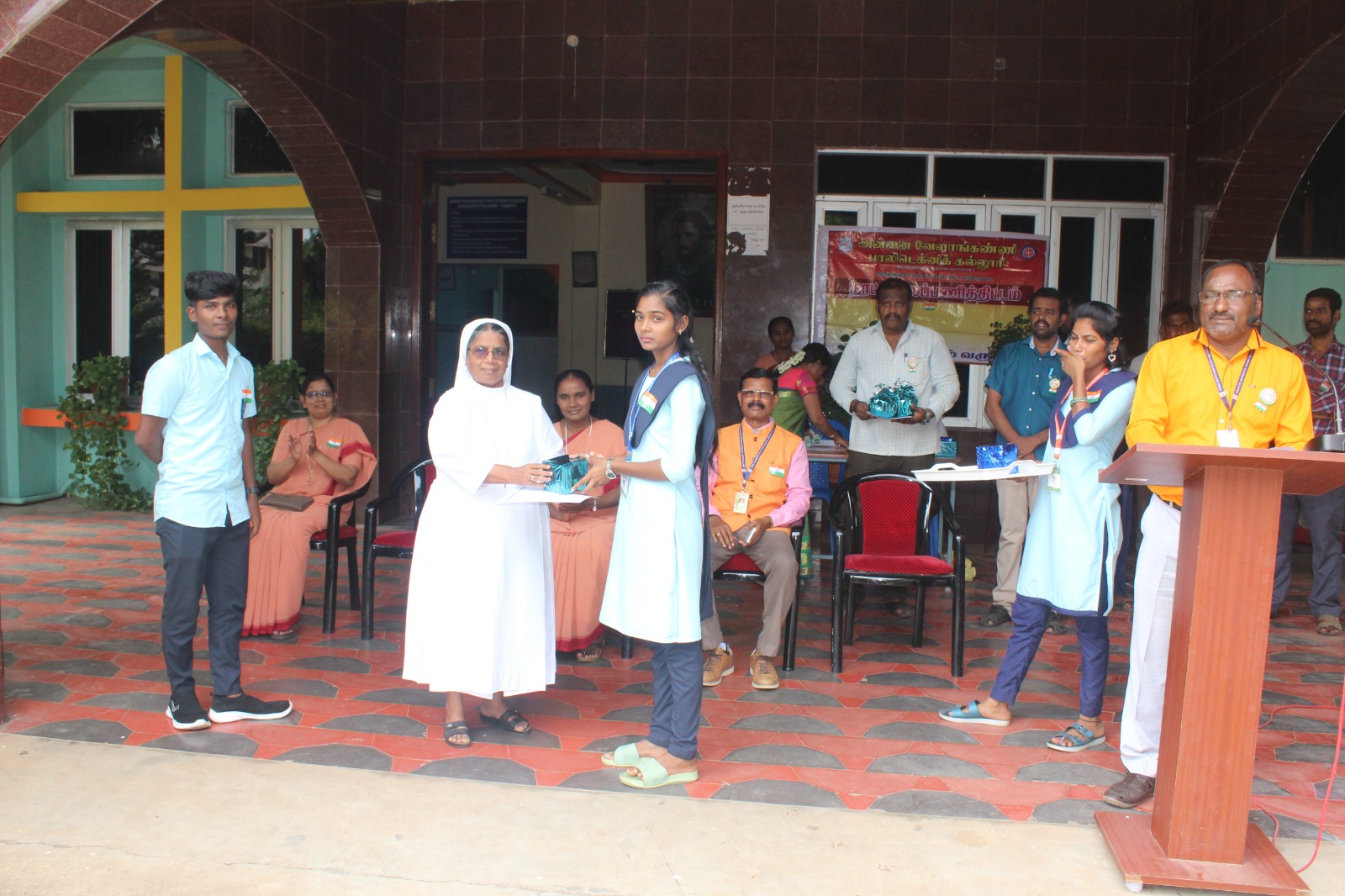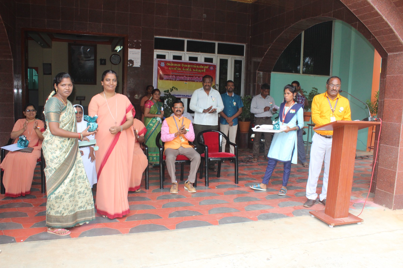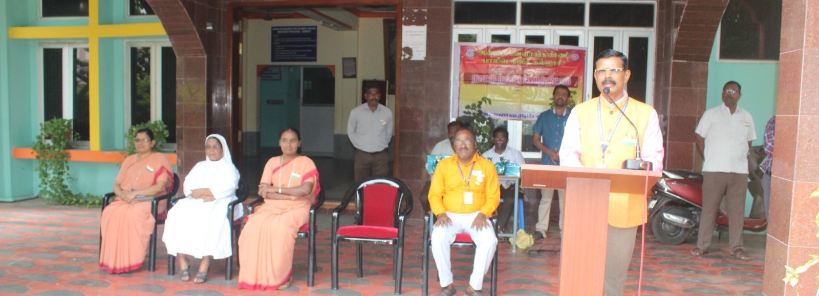 The 79th Independence Day was celebrated in our college on 15th August 2025. Mr. B. Sundar Rajkumar, Lect/Maths delivered the welcome address. Dr. S. Savariraj, principal, felicitated the gathering. Rev. Sr. A. Avila Therese, Secretary, delivered the presidential address and issued the prizes for the students those who won in the Anti-drug awareness competition. Mr. Sekar, Physical Director, delivered the vote of thanks.