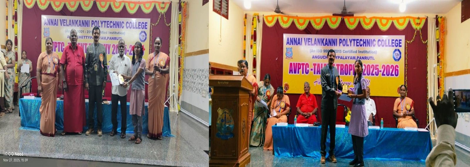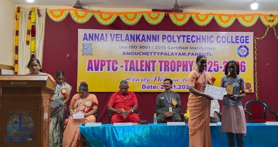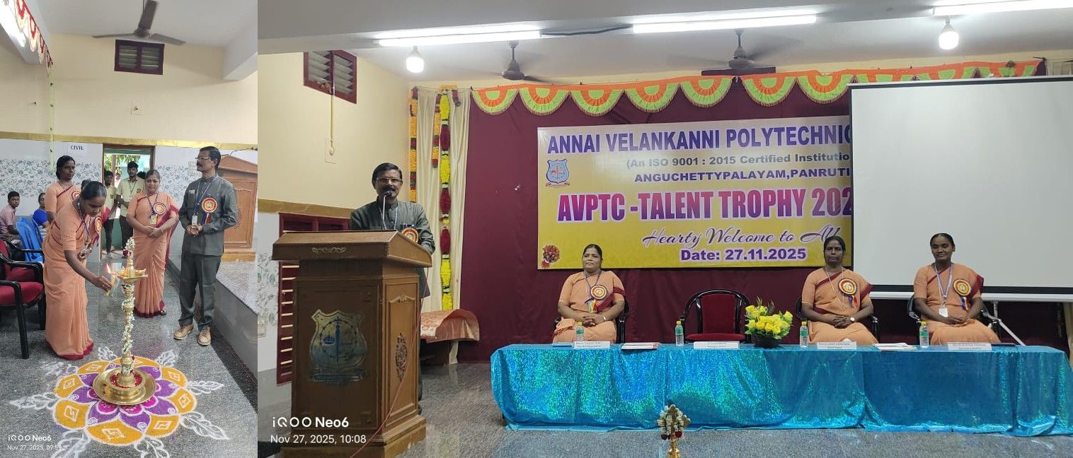The AVPTC Talent Trophy (2025–26) was conducted on 27th November 2025, providing students from government, government-aided, and self-financed schools in and around Panruti an opportunity to showcase their creativity and talents. Rev. Sr. Lissie Usha Rani, SAT, Principal of St. Anne’s Mat Hr Sec School, Thattanchavadi, was the chief guest for the inaugural function, presided over by Rev. Sr. A. Avila Therese, SAT, Secretary of AVPTC, with Dr. S. Savariraj, Principal, AVPTC, felicitating the gathering. The valedictory function featured Mr. N. Mathivanan and Mr. A. Elumalai, past Presidents of the Rotary Club, Panruti, as chief guests. A total of 540 students and 48 staff members from 30 schools participated enthusiastically, making the event a memorable success.